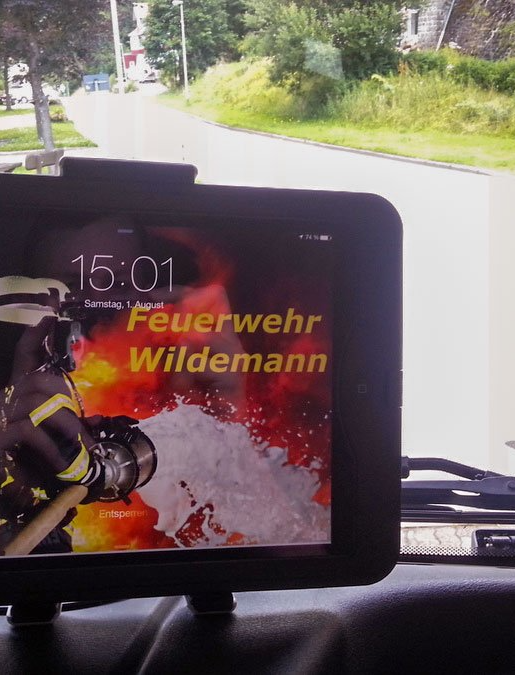 Das Tablet dient zum einen dem ersteintreffenden Gruppenführer als Informationsmöglichkeit und kann andererseits vielseitig in der Aus- und Fortbildung verwendet werden. Neben den Feuerwehr(einsatz-)plänen befindet sich auch eine Übersicht sämtlicher Hydranten, eine Gefahrstoffauskunft, Rettungsdatenblätter für die technische Hilfeleistung und eine Navigationsmöglicheit in Form diverser Apps an Bord. Da das Gerät an den Beamer angeschlossen werden kann, können Führungskräfte in der Vor- und Nachbereitung von Einsätzen und Übungen auf eine umfassenden Lagekarte zurückgreifen. Nach ersten Tests durch die Kameraden wurde die intuitive Bedienweise des Apple-Produktes gelobt. Neben dieser positiven Eigenschaft war auch die hohe Ausfallsicherheit gegenüber Windows/Android ein Entscheidungskriterium für uns.
