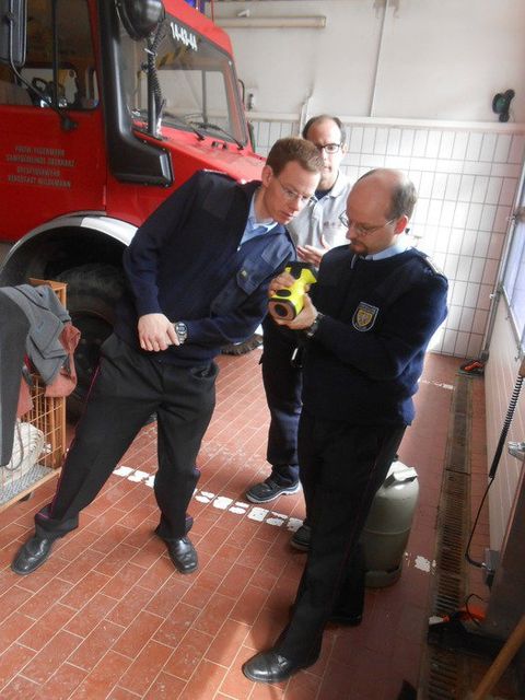 Tobias Schrön von Florians Feuerwehrshop erläuterte ausführlich in Theorie und Praxis die Handhabung und Einsatzmöglichkeiten einer Wärmebildkamera.